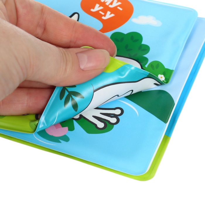 - Книжка выполнена из безопасного материала, который не разрушается под воздействием воды. Она плавает на поверхности, что делает процесс игры комфортным и безопасным для малыша.