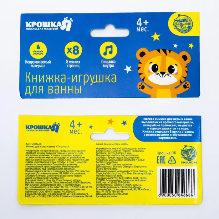 Книжка - игрушка для ванны Крошка Я «Приключения тигрёнка Ри», 8 страниц, от 4 мес. — Характеристики