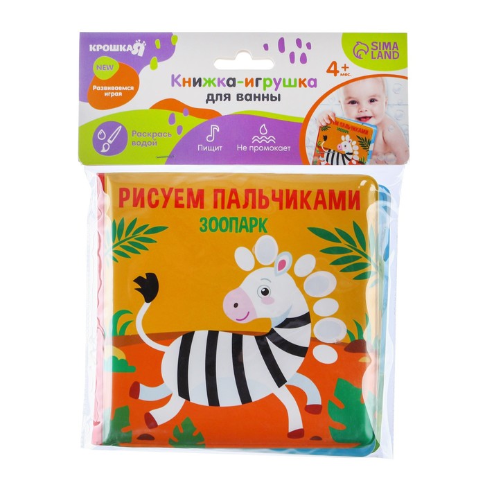 Книжка - игрушка для ванны Крошка Я «Рисуем пальчиками: зоопарк», водная раскраска — Характеристики