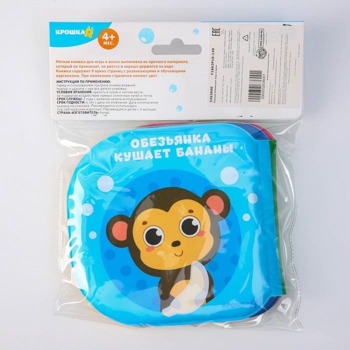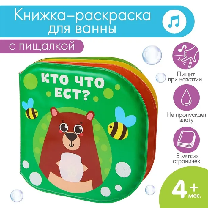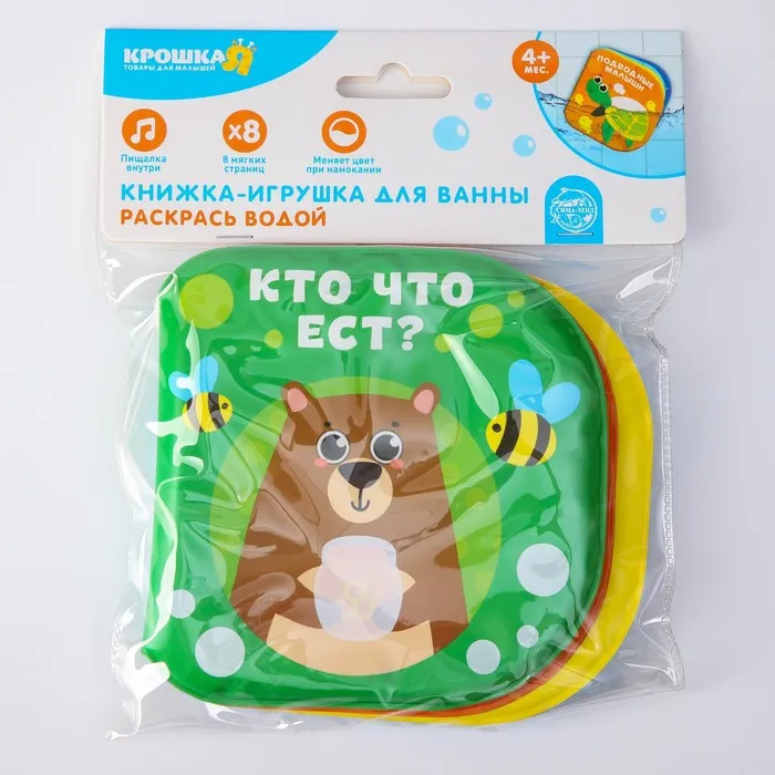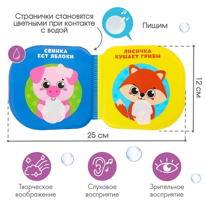 Книжка - игрушка для ванны «Кто что ест?», водная раскраска, Крошка Я — Характеристики