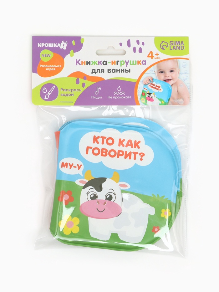 Книжка - игрушка для ванны «Кто как говорит?», водная раскраска, Крошка Я — Характеристики