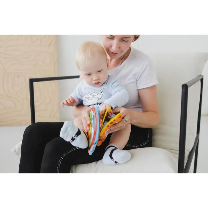 Читать в любое время и в любом месте, даже во время купания — легко! Книжечка сделана из мягкого непромокаемого материала. Поэтому с ней смело можно играть во время водных процедур или брать с собой на прогулку. Мягкие страницы не рвутся и легко очищаются.