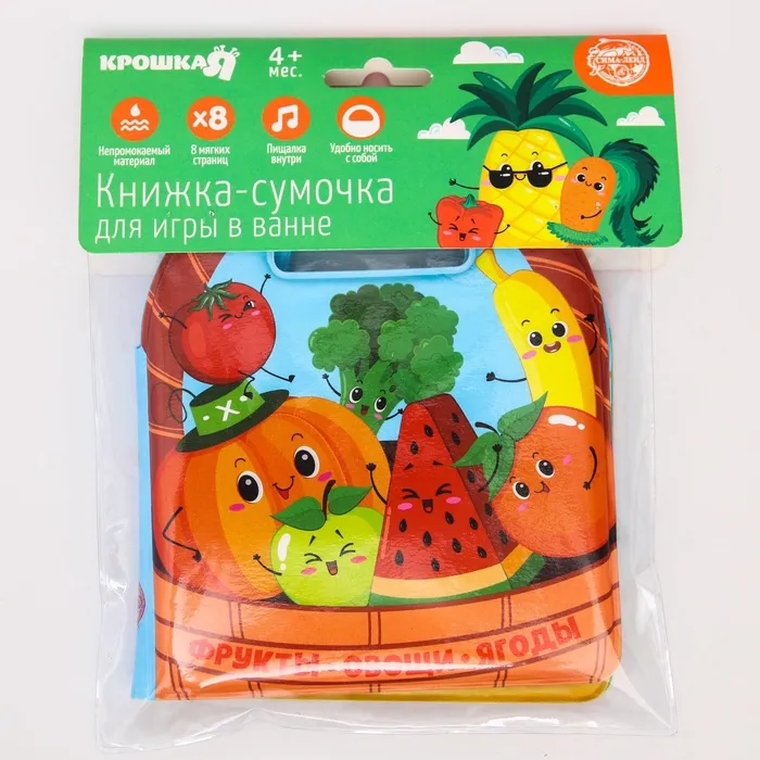 Книжка - игрушка для ванны «Овощи и фрукты», виды МИКС, Крошка Я — Характеристики
