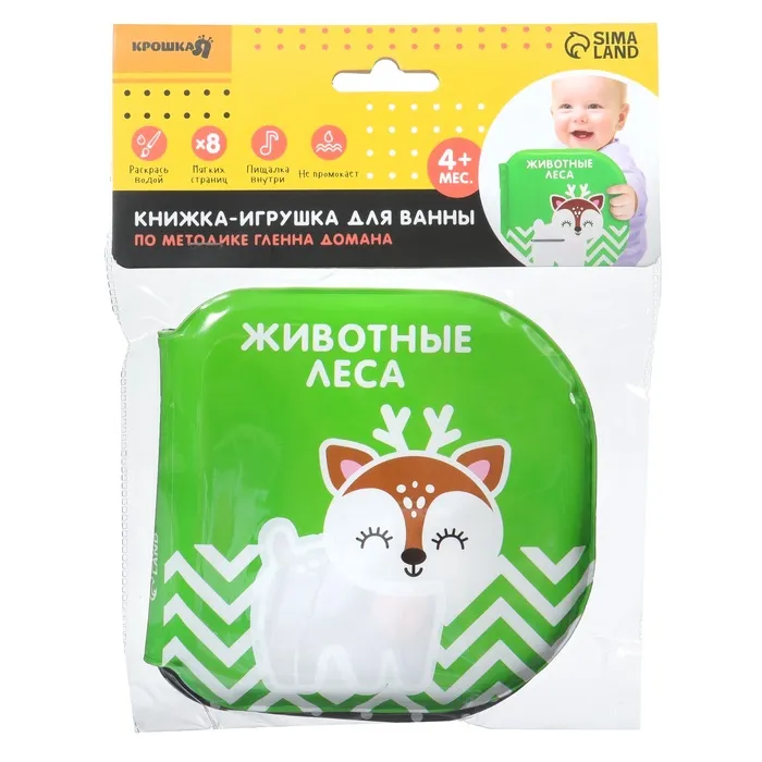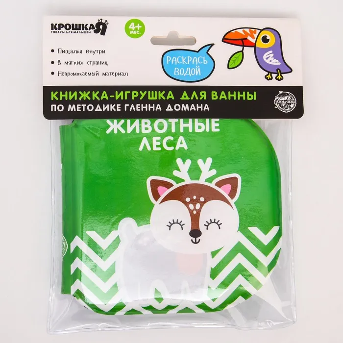 Книжка - игрушка для ванны «Животные леса», водная раскраска, по методике Гленна Домана, Крошка Я — Характеристики