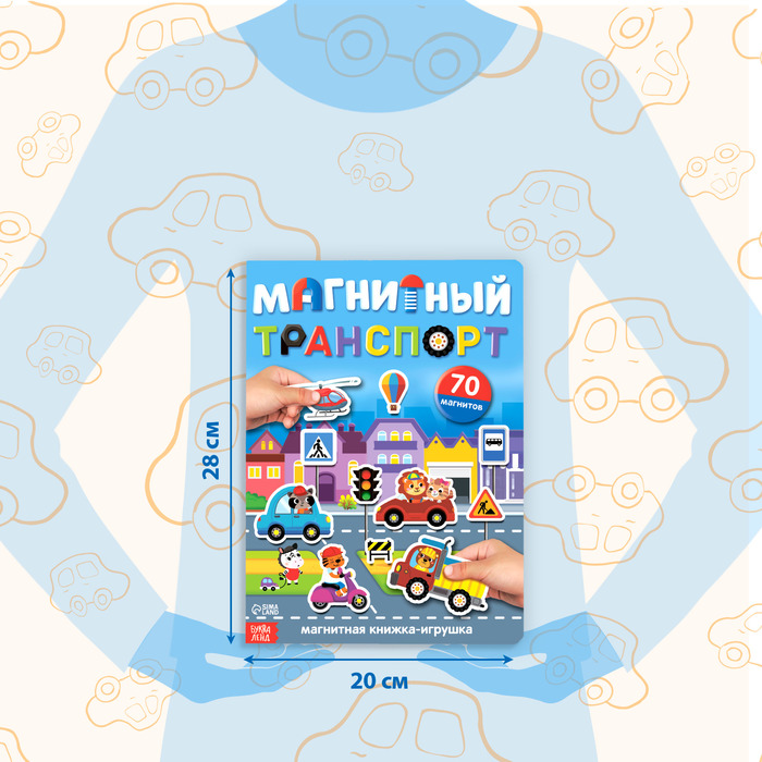Магнитная книга-игра «Транспорт» — это увлекательный способ для мальчиков познакомиться с миром машин и техники. С её помощью ребёнок создаёт собственные сюжеты, используя 70 магнитных элементов, включая разнообразные транспортные средства. Идеально подходит для совместных игр и развития воображения.