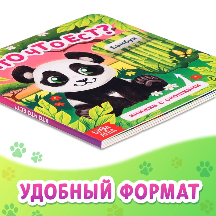 Книжка картонная с окошками «Кто что ест?», 12 стр. — Характеристики