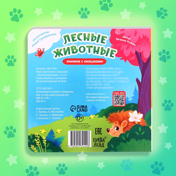 Книжка картонная с окошками «Лесные животные», 12 стр. — Характеристики