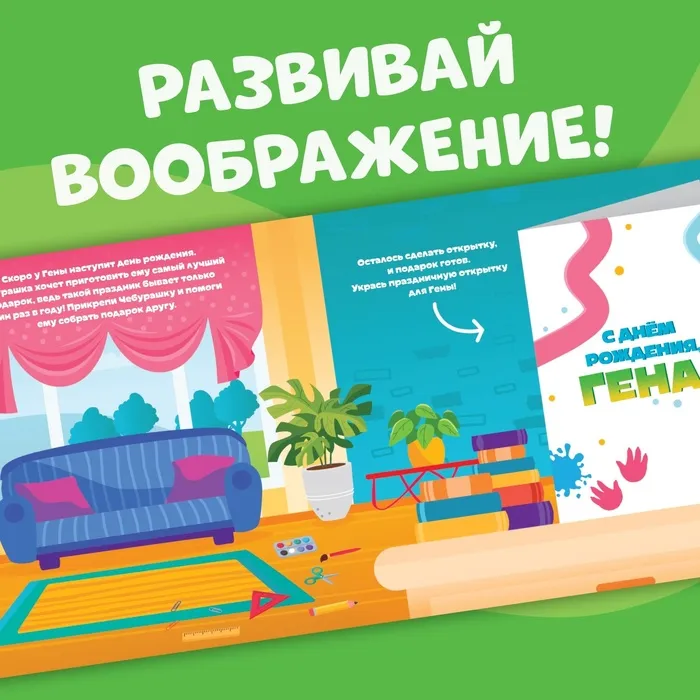 Книжка магнитная «День Рождения Гены», 31 магнит, Чебурашка — Характеристики