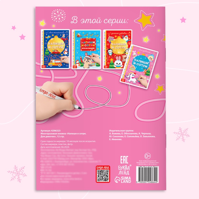 Книжка многоразовая «Напиши и сотри. Для девочек», 12 стр., с маркером — Характеристики