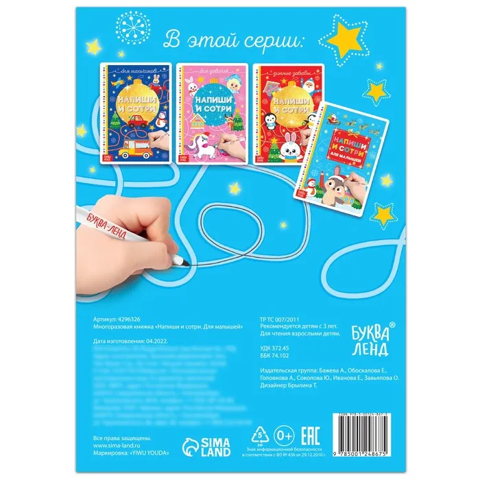 Книжка многоразовая «Напиши и сотри. Для малышей», с маркером, 12 стр. — Характеристики