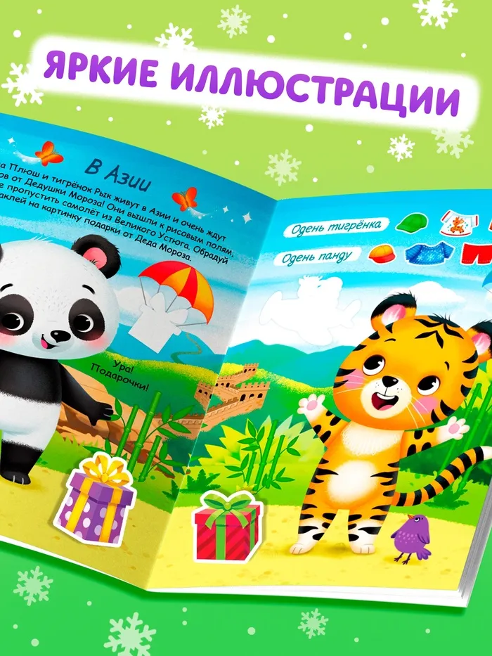 Если малыш любить клеить наклейки и читать новогодние истории, то эта книжка его точно порадует!