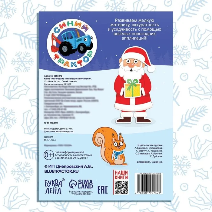 Книжка «Новогодние аппликации с наклейками» создана для поклонников мультфильмов о Синем тракторе! Набор наклеек — это возможность для ребёнка принять участие в невероятных приключениях, скоротать время в ожидании праздника и потренировать важные навыки.