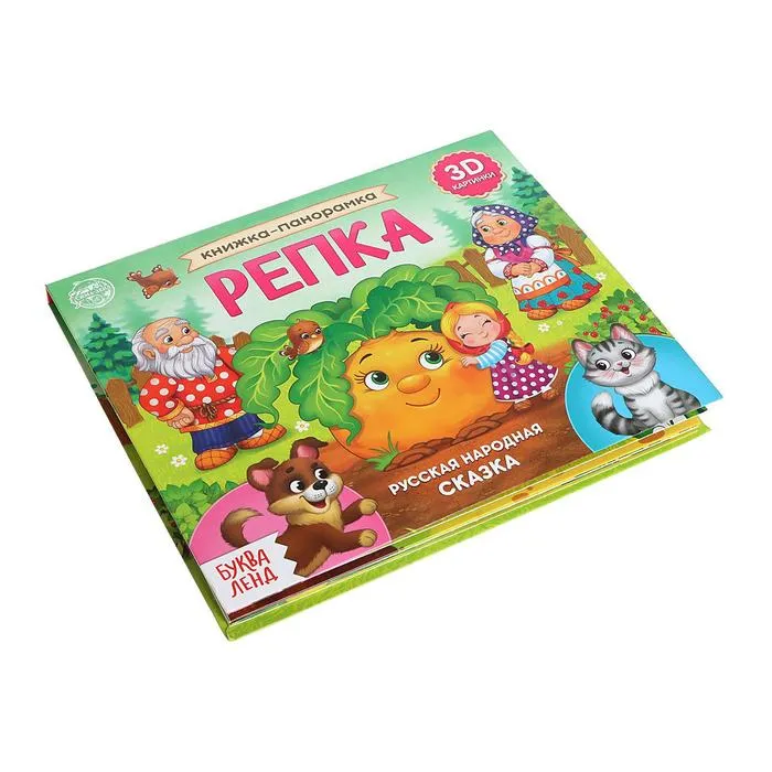 Книжка-панорамка «Репка» с 12 страницами станет первой любимой историей для вашего малыша. Это яркое издание из плотного картона оживляет классическую русскую народную сказку благодаря 3D-иллюстрациям на каждом развороте. Твёрдый переплёт делает книгу долговечной и удобной для использования с первых месяцев жизни.