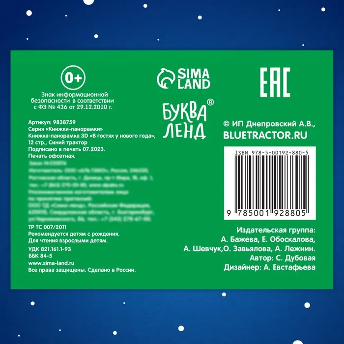 Книжка - панорамка 3D «В гостях у нового года», 12 стр., Синий трактор — Характеристики