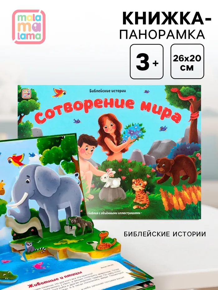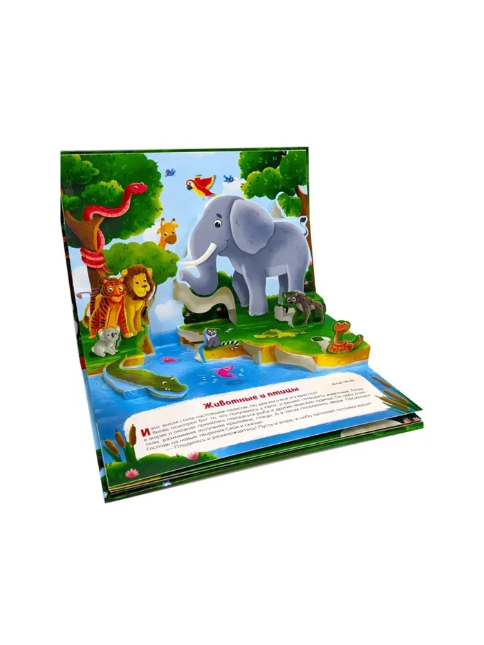 Книжка-панорамка «Сотворение мира» станет увлекательным способом познакомить ребёнка с одной из ключевых библейских историй. Этот красочный формат книжки предлагает 12 страниц с яркими иллюстрациями и объёмными POP-UP элементами, которые оживляют события создания мира, Адама и Евы. Твёрдый переплёт делает книгу долговечной и удобной для семейного чтения.