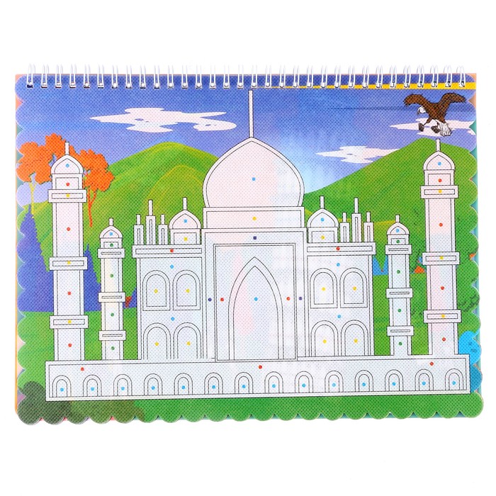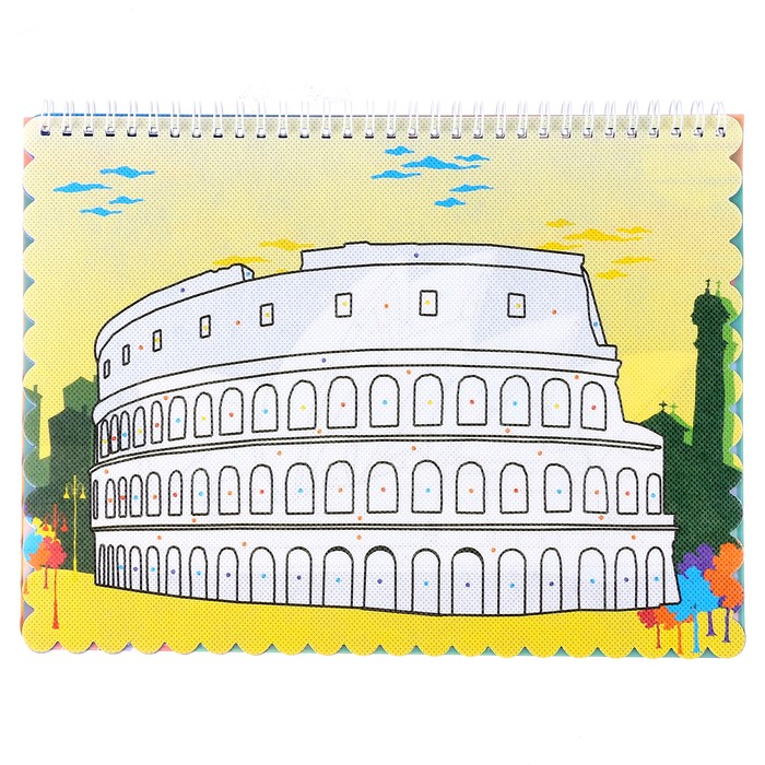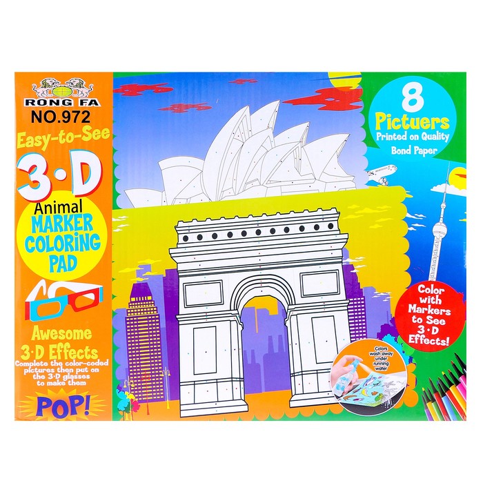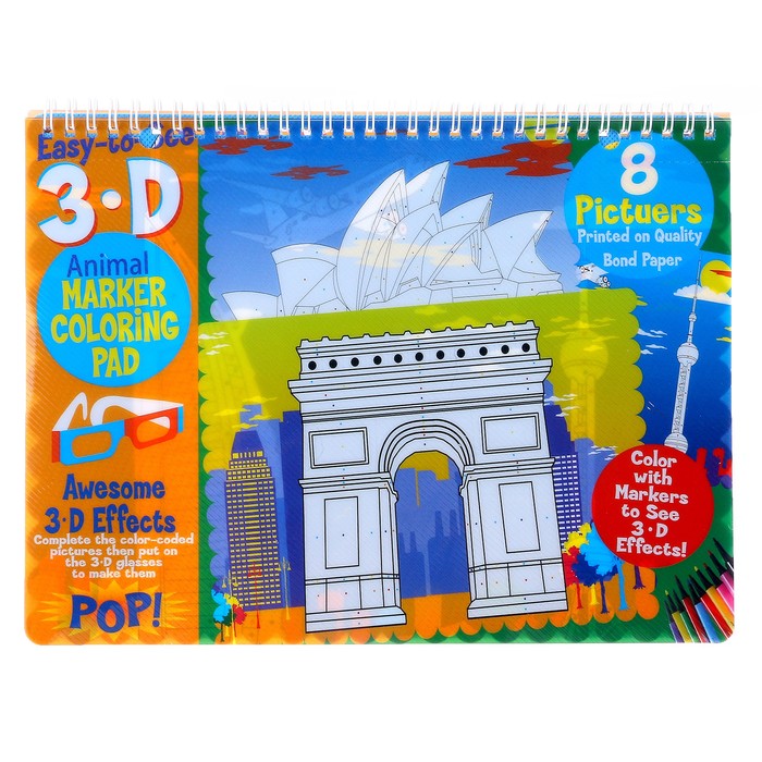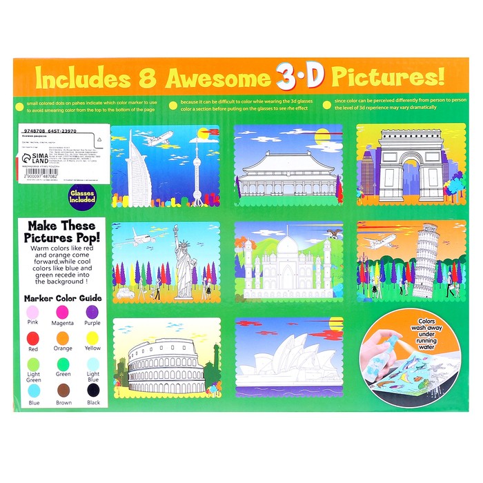 Книжка-раскраска многоразовая «Достопримечательности» фломастеры 12 цветов, 3D очки, бутылочка для воды — Характеристики