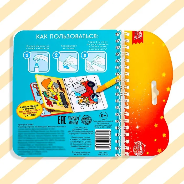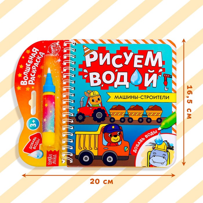 Книжка-раскраска многоразовая «Рисуем водой. Машины- строители», 10 стр. — Характеристики