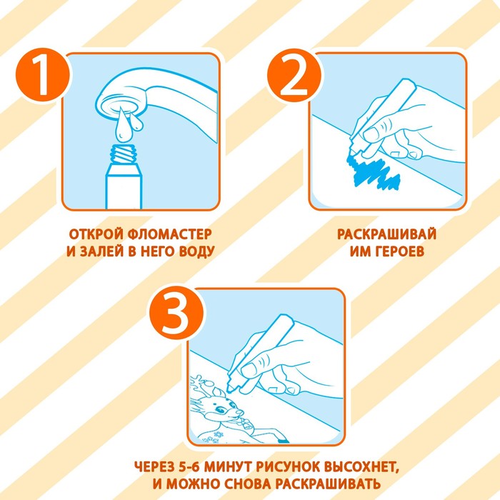 - Через 5–6 минут вода высохнет, и картинку можно снова раскрашивать.
