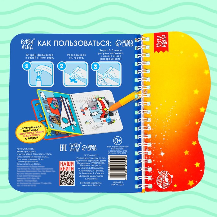 Многоразовая раскраска «Рисуем водой. Транспорт» станет увлекательным развлечением для детей от 3 лет. Эта волшебная книга предлагает малышам познакомиться с различными видами транспорта, раскрашивая их водой. В комплект входит специальный маркер, который превращает процесс рисования в настоящее чудо.