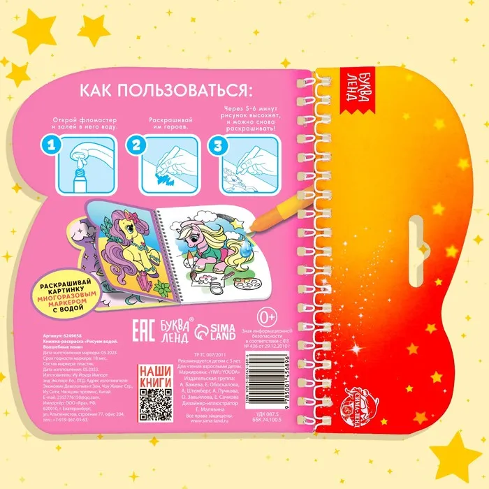 Книжка-раскраска многоразовая «Рисуем водой. Волшебные пони», 10 стр. — Характеристики