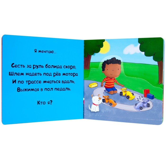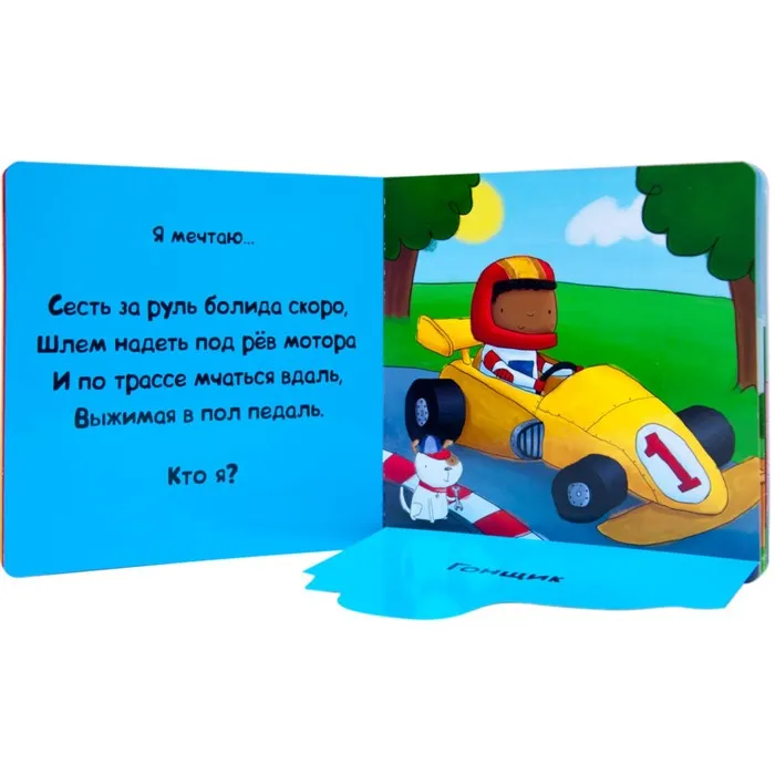 Эта книга — находка для маленьких мечтателей, которые задумываются о том, кем они хотят стать, когда вырастут. Она подойдёт как подарок для ребёнка, который интересуется разнообразием профессий или просто любит играть с книгами. Компактный размер и прочные материалы делают её удобной для использования дома или в детском саду. Подарите ребёнку возможность мечтать и открывать для себя необычные профессии!