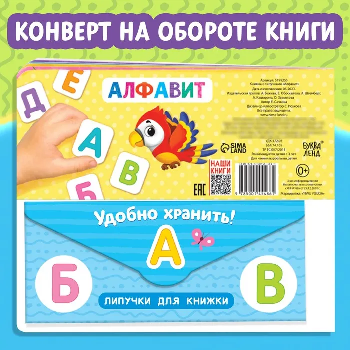 - Необходимо самостоятельно приклеить липучки в книгу и на карточки с буквами.