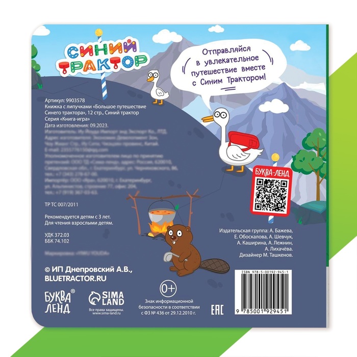 Книжка с липучками «Большое путешествие» не просто развлечение, но и важный помощник в развитии вашего ребёнка. Погрузитесь в мир приключений Синего трактора вместе с малышом!