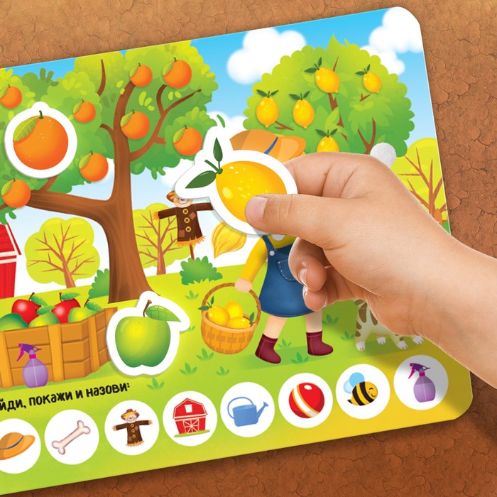 Обучающая книга с липучками «Что где растёт?» направлена на расширение кругозора у деток. Внутри ребёнок найдёт интересные задания и загадки, а также сможет поиграть в игру «Найди и покажи».