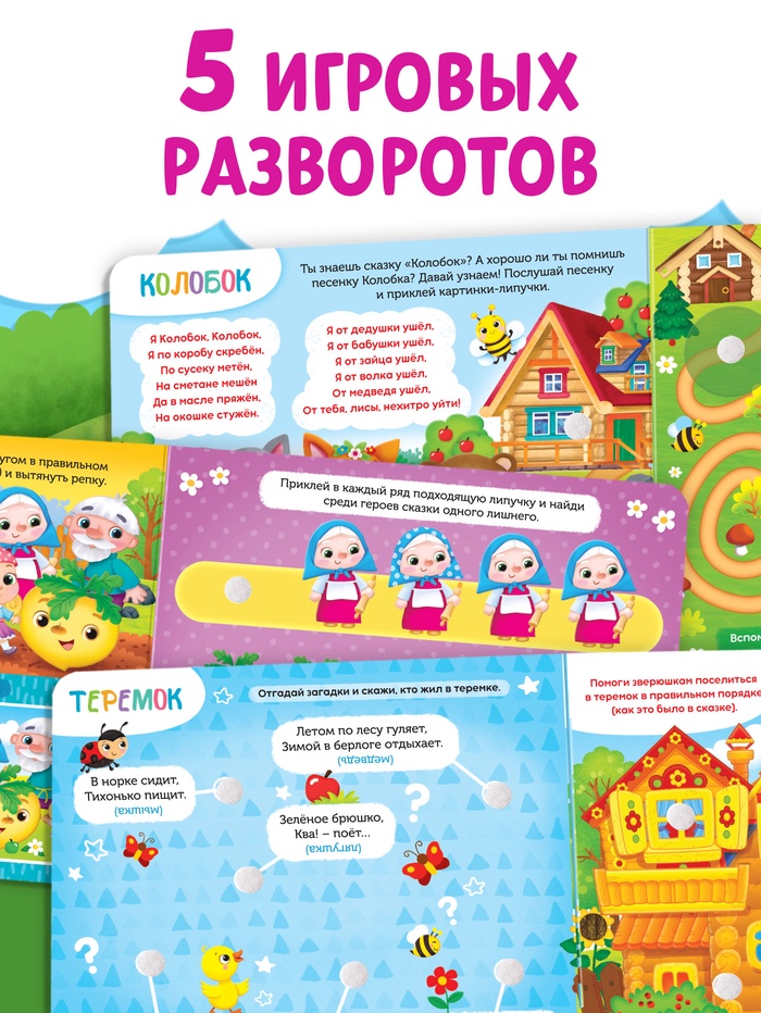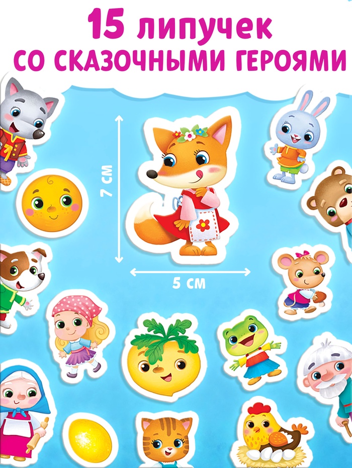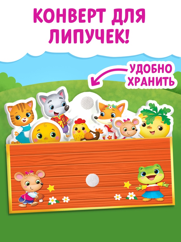 - Мягкие липучки клеятся в книгу, а твёрдые — на героев из сказок.