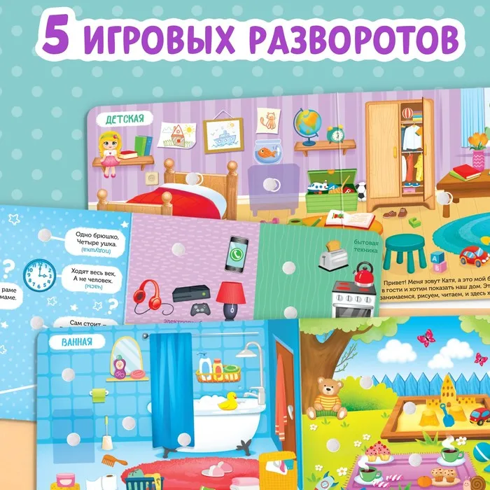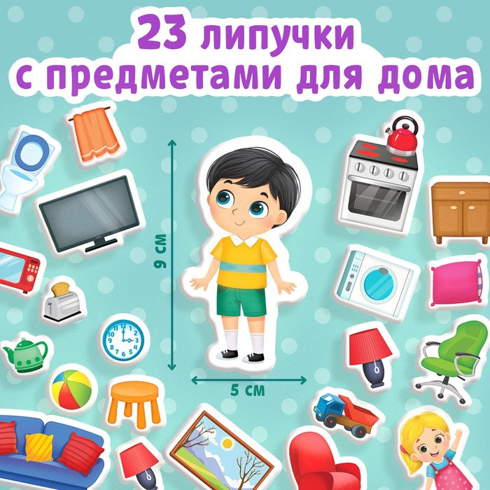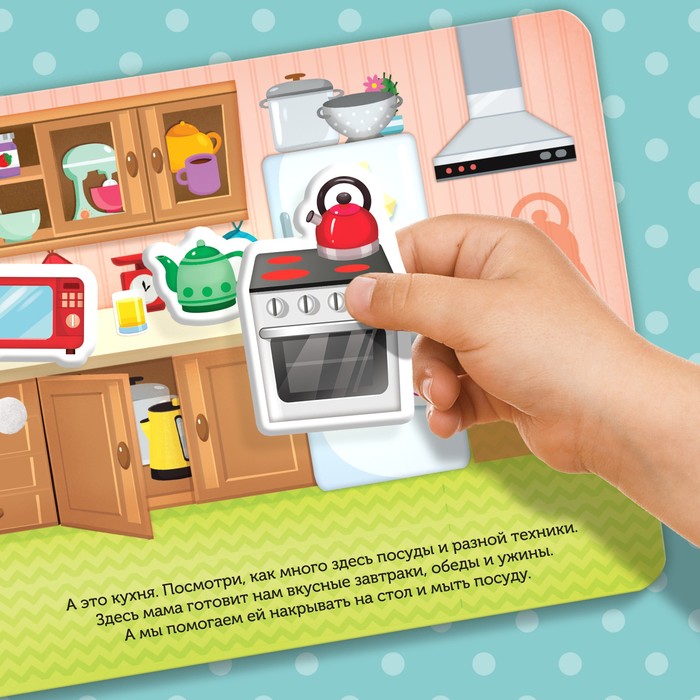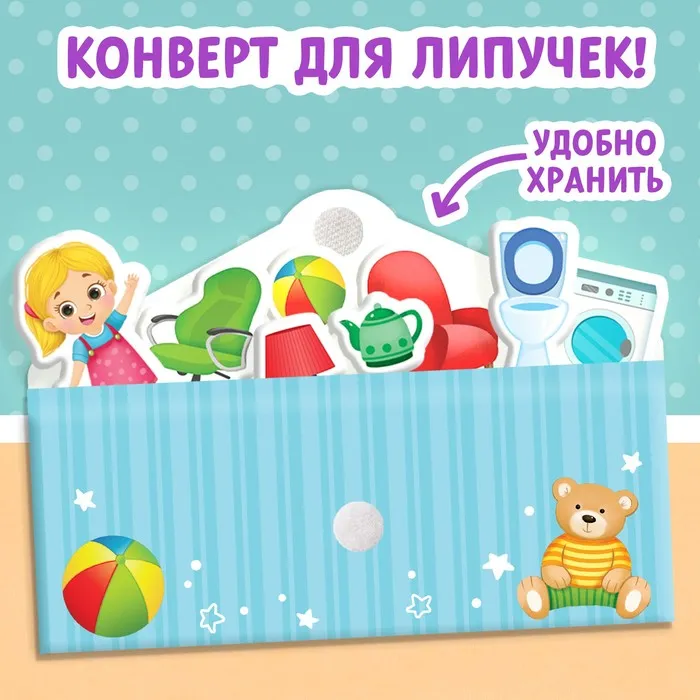 Обучающая книга с липучками «Мой дом» направлена на расширение кругозора у деток. Внутри ребёнок найдёт интересные задания и загадки, а также сможет поиграть в игру «Найди и покажи».