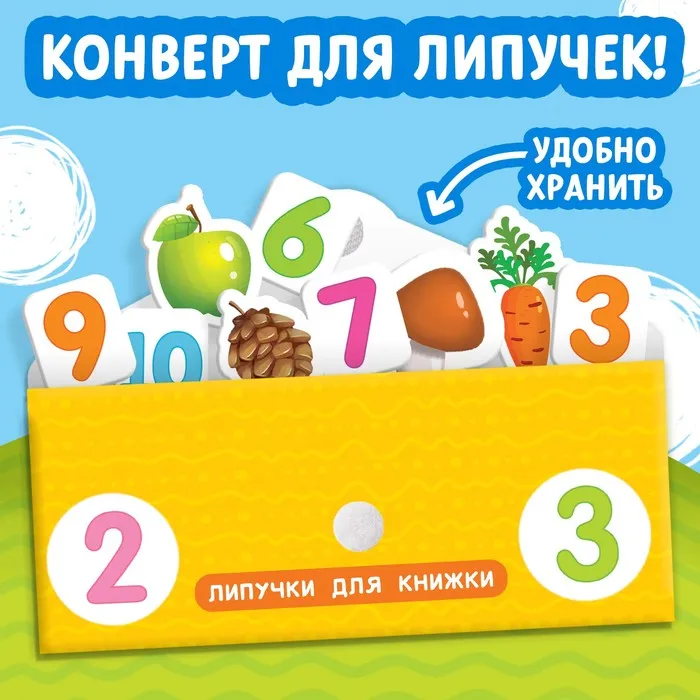 - Мягкие липучки клеятся в книгу, а твёрдые — на карточки с цифрами.