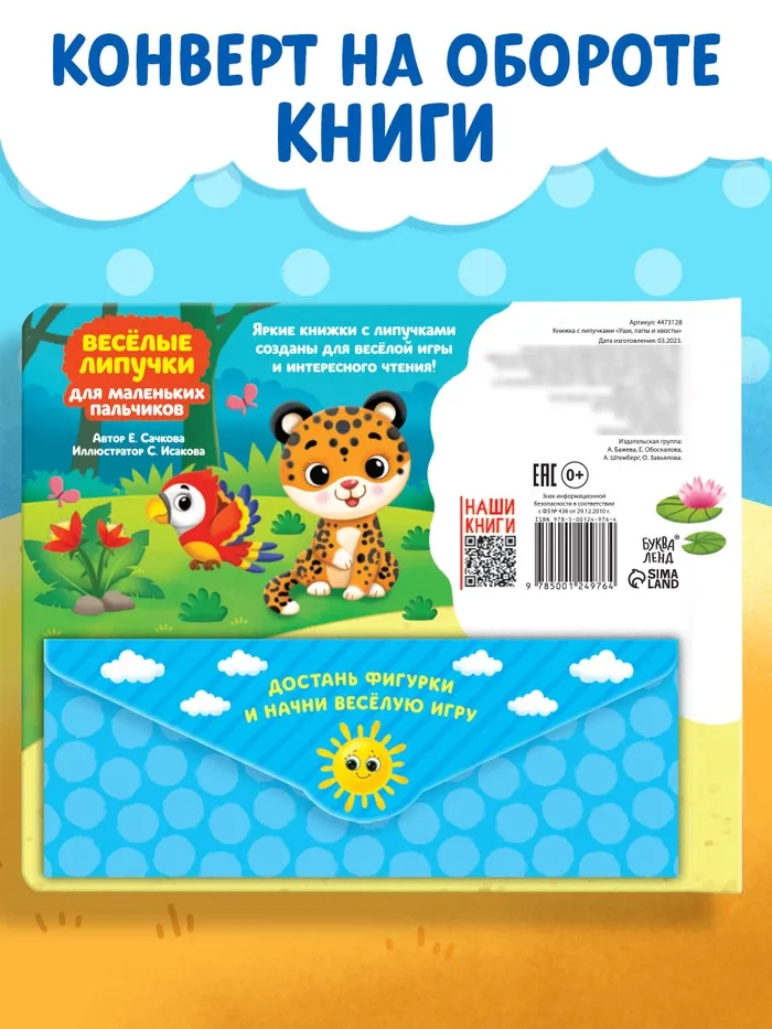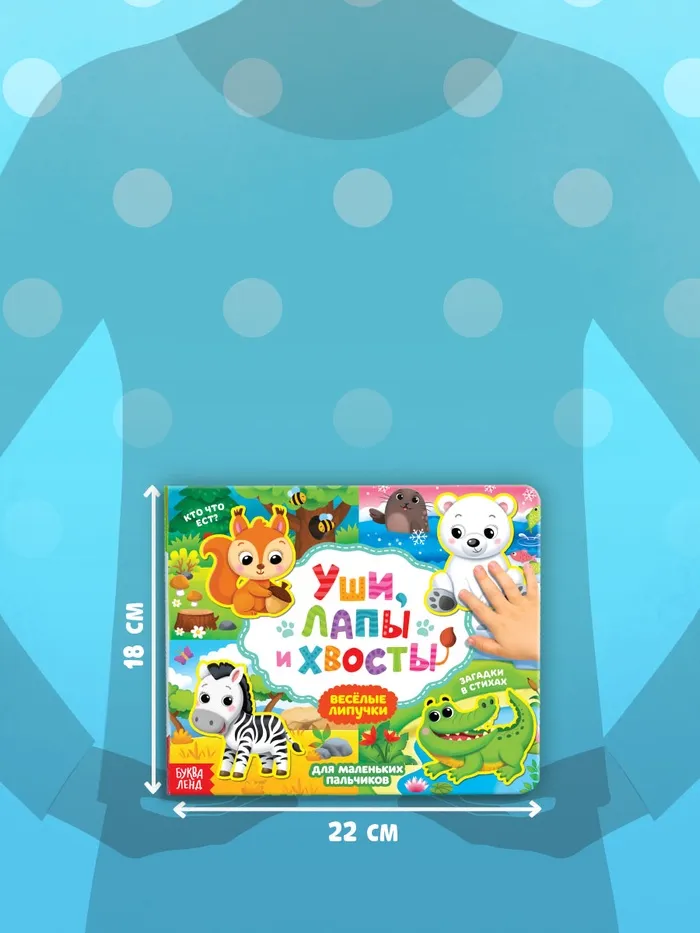 Обучающая книга с липучками «Уши, лапы и хвосты» направлена на расширение кругозора у деток. Внутри ребёнок найдёт интересные задания и загадки в стихах.