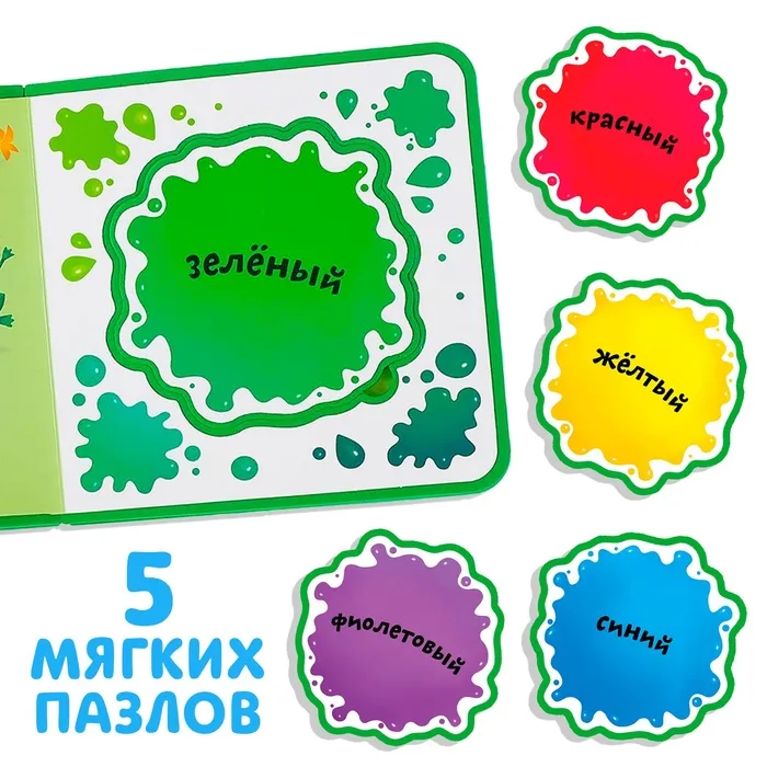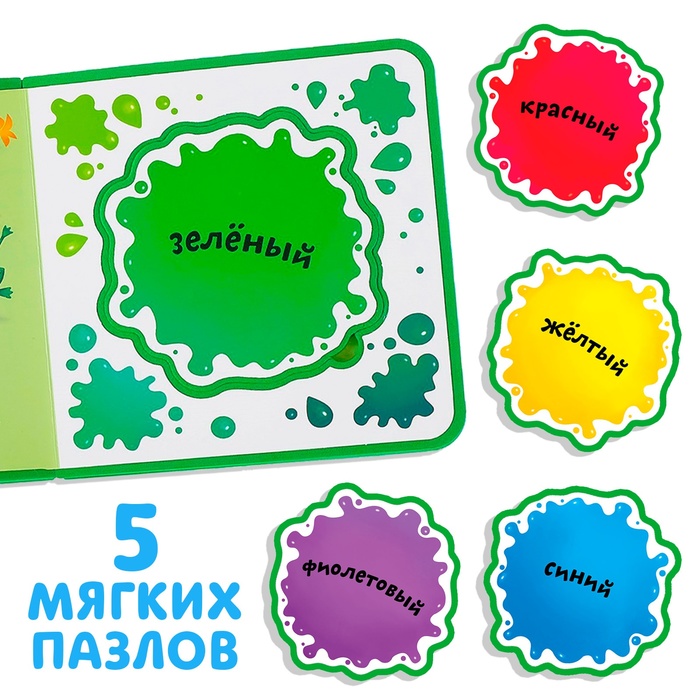 С мягкой книгой малыш получит свои первые знания о цветах. А также сможет поиграть с вынимающимися пазлами.