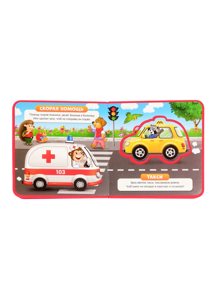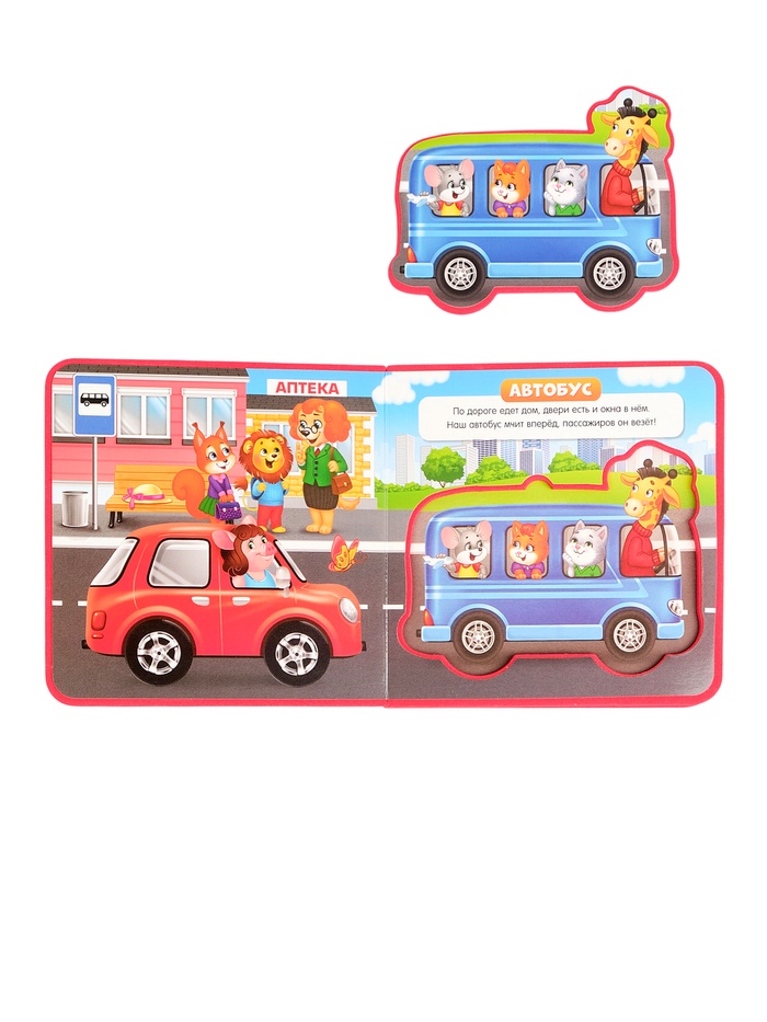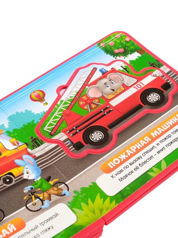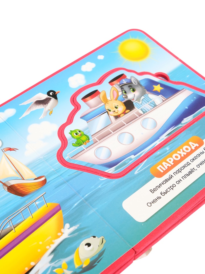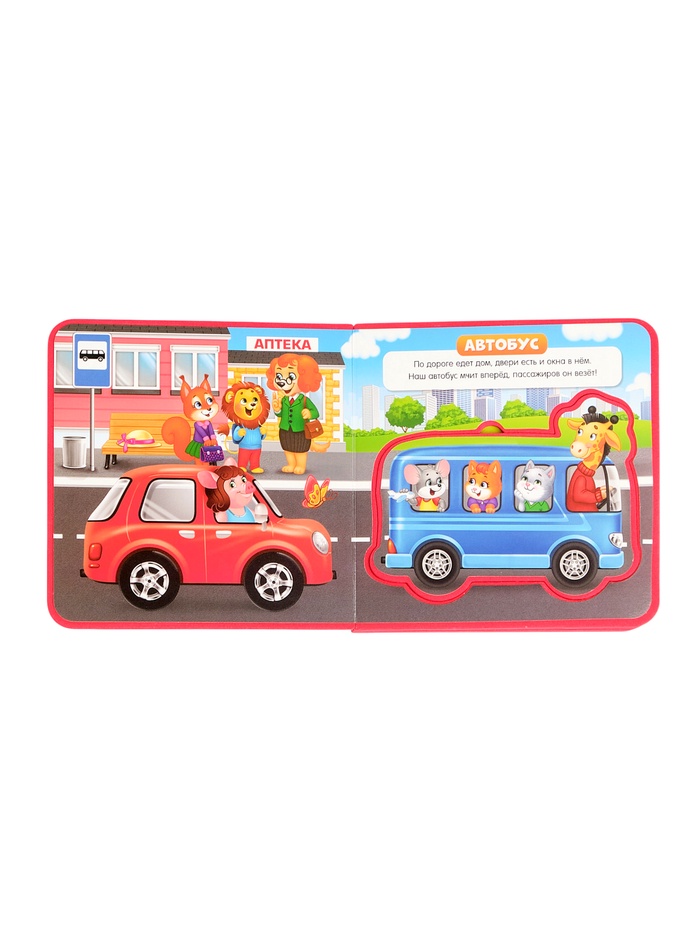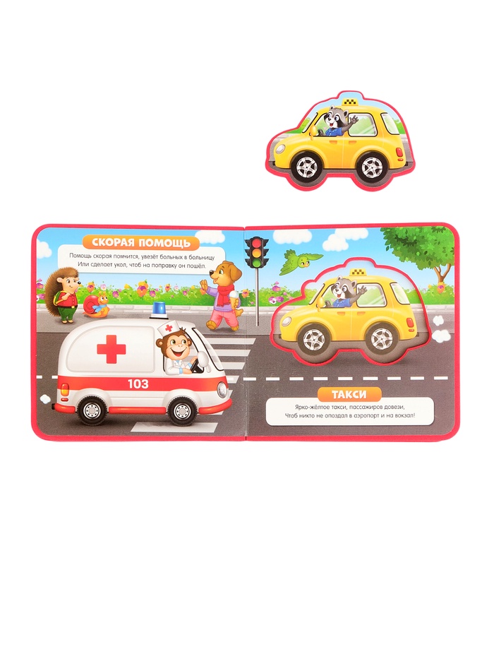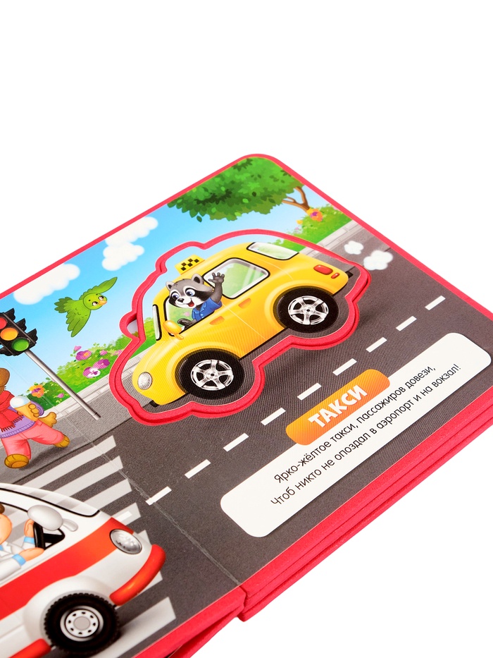 С мягкой книгой малыш узнает о разных видах транспорта, а также сможет поиграть с вынимающимися пазлами.