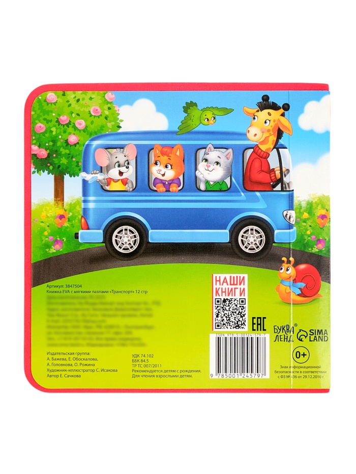 Книжка с мягкими пазлами EVA «Транспорт», 12 стр. — Характеристики