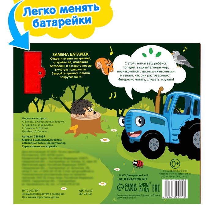 Книжка с музыкальным чипом «Животные леса», Синий трактор — Характеристики