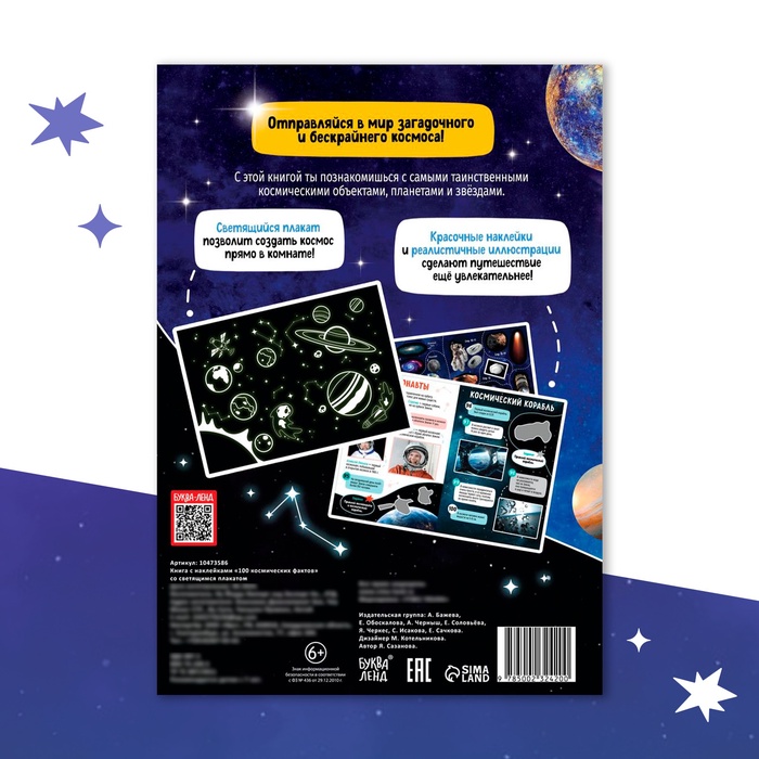 Книга с наклейками «100 фактов о космосе» станет настоящим подарком для юного исследователя галактики. Она поможет ребёнку увлечённо изучать просторы Вселенной и знакомиться с интересными фактами о планетах, звёздах и космических технологиях. Уникальное дополнение — светящийся плакат, который станет украшением детской комнаты и напоминанием о захватывающем мире космоса.
