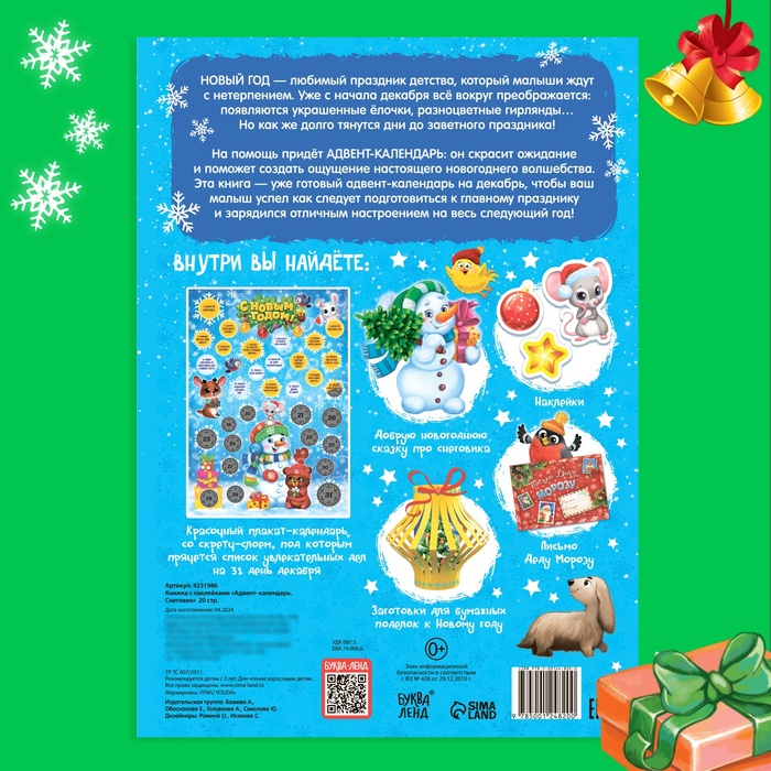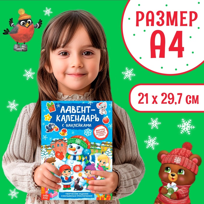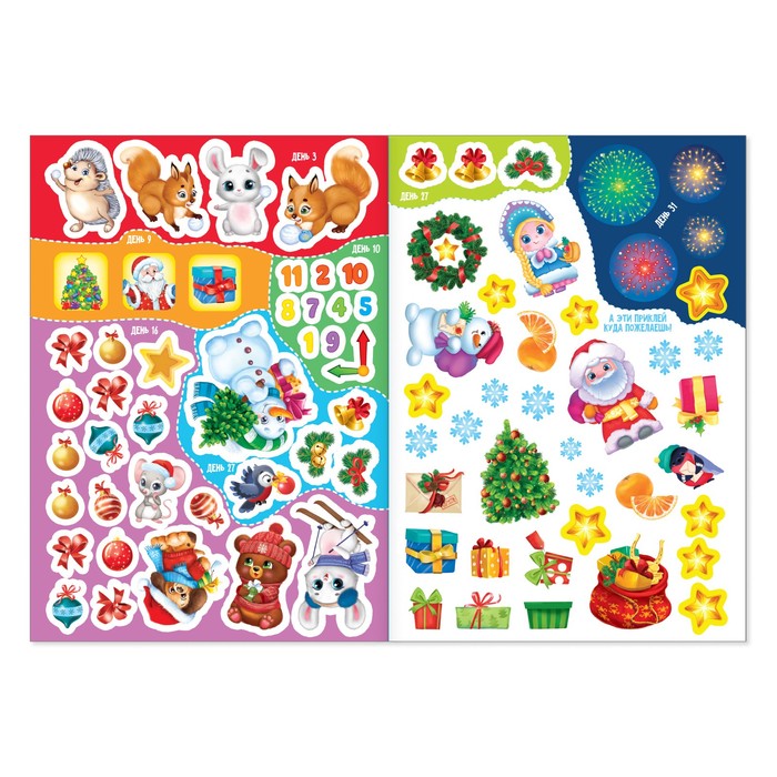 В течение всего декабря малыш будет выполнять задания и отмечать даты в календаре с помощью наклеек. Ребёнок напишет письмо Деду Морозу, раскрасит картинки, расшифрует слова, преодолеет лабиринты.