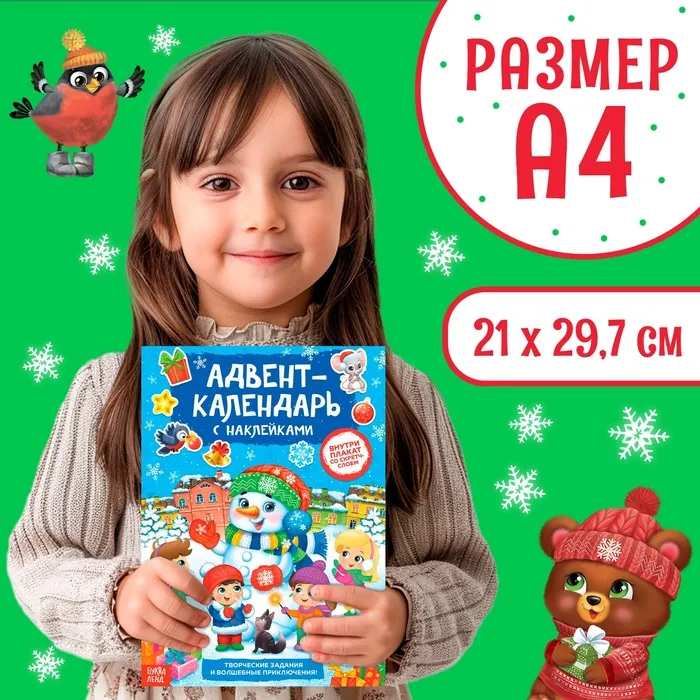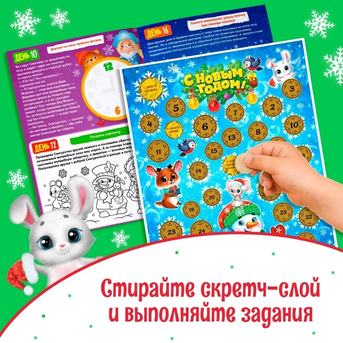 Книжка с наклейками «Адвент - календарь. Снеговик», со стирающимся слоем, А4, 24 стр. — Характеристики