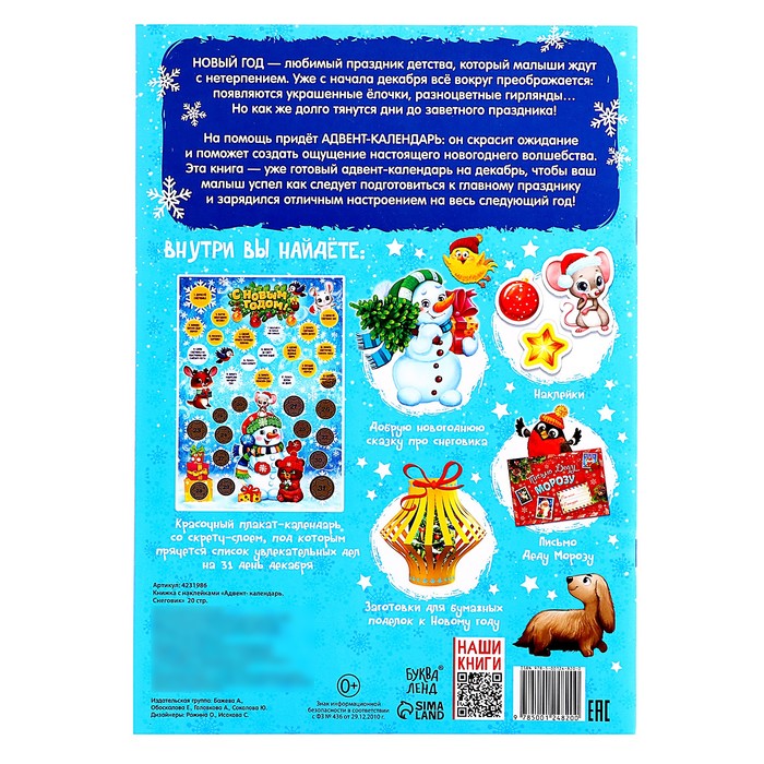 С книжкой с наклейками «Адвент- календарь. Снеговик» ребёнок успеет подготовиться к главному зимнему празднику и зарядится отличным настроением.