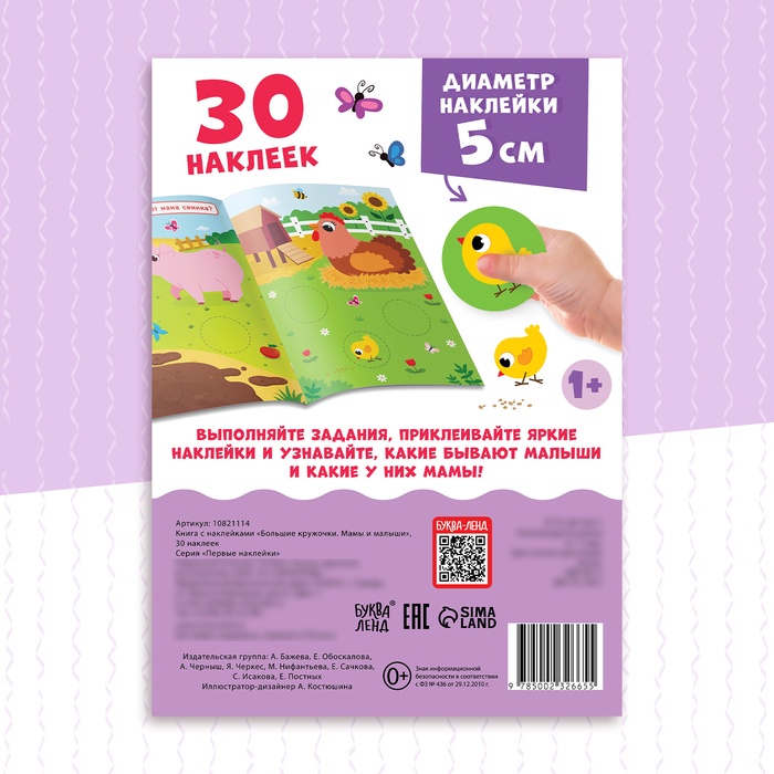Книжка с наклейками «Большие кружочки. Мамы и малыши», 30 стикеров — Характеристики