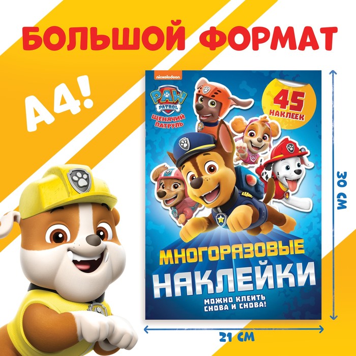 Книжка с многоразовыми наклейками «Щенячий патруль, вперёд!» — это увлекательный способ погрузиться в мир любимого мультфильма. На 4 страницах малыш найдёт красочные сцены и 45 многоразовых стикеров, которые можно использовать снова и снова для создания уникальных историй. Мягкая обложка делает книгу удобной для использования дома или в дороге.