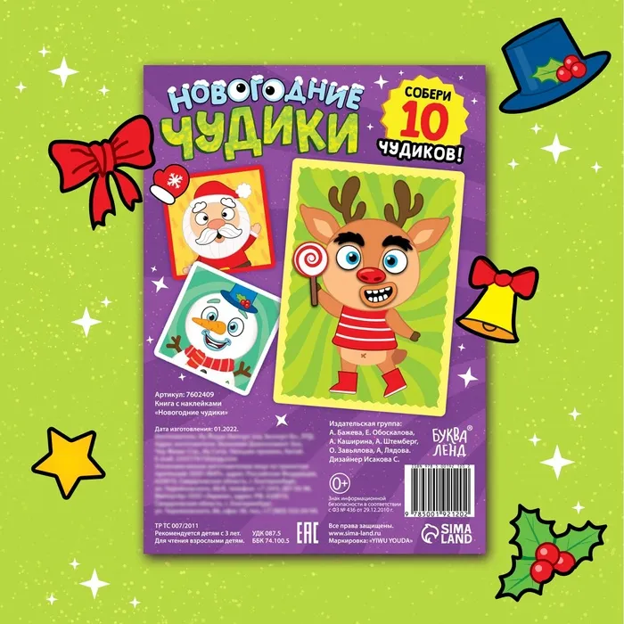 Книжка с наклейками «Новогодние чудики», 12 стр., 100 стикеров — Характеристики