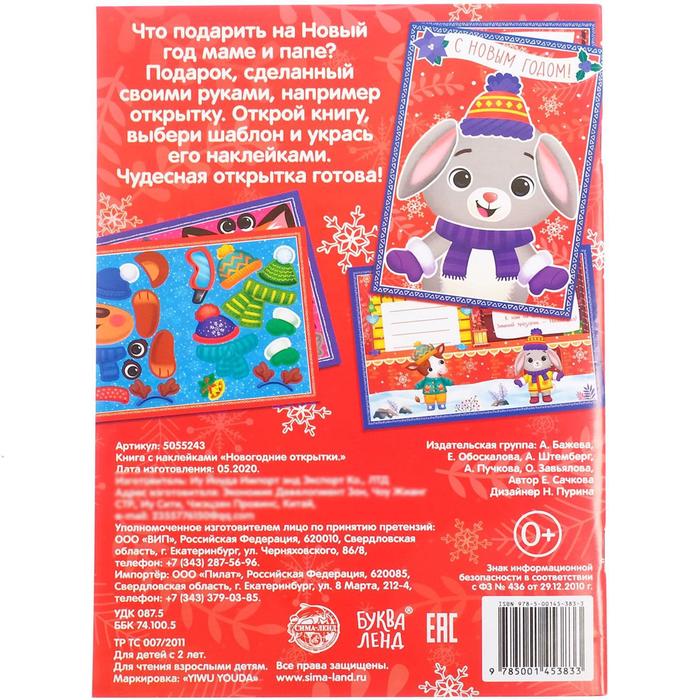 Книжка с наклейками «Новогодние открытки», 20 стр. — Характеристики
