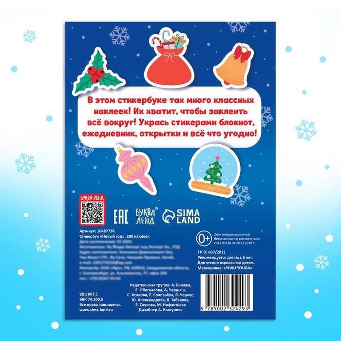 Стикербук «Новый год» — это сборник из 200 ярких стикеров, которые добавят праздничного настроения любым предметам. Открытки, блокноты, ежедневники или подарки — украсьте всё вокруг с помощью этих новогодних наклеек!
