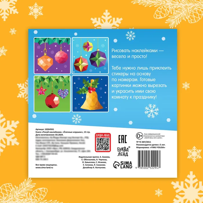 Книжка с наклейками «Рисуй наклейками. Ёлочные игрушки», 12 стр., 100 наклеек — Характеристики