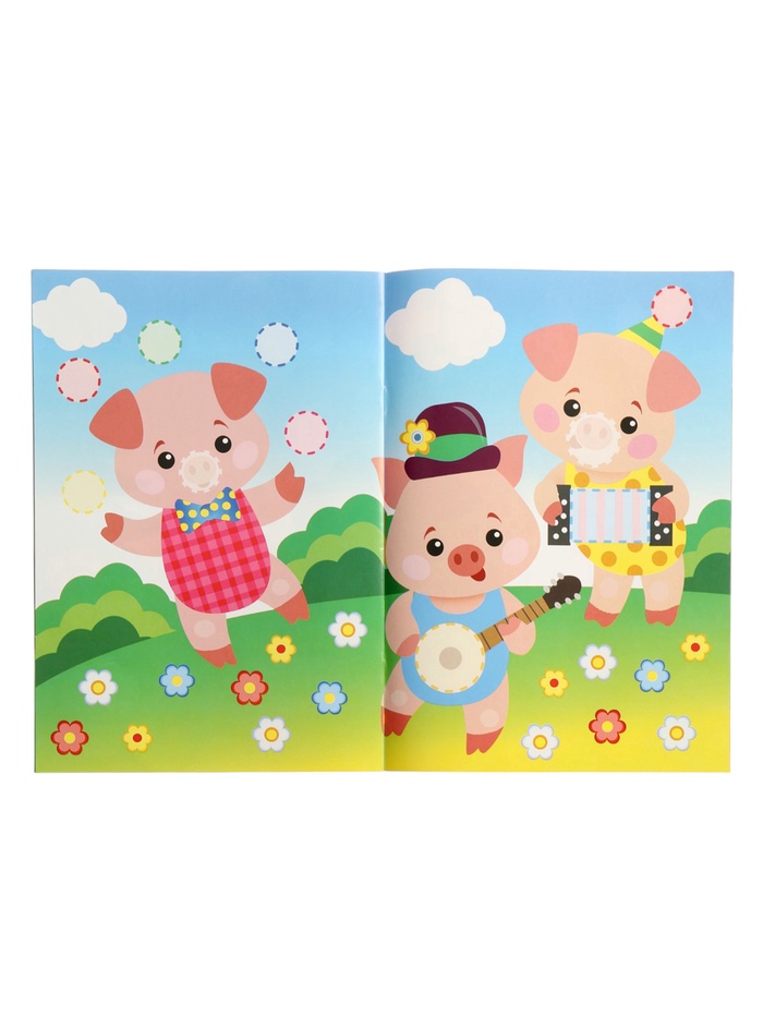 - Без лишних покупок. Всё внутри — наклейки, яркие страницы, простые сюжеты. Не нужно ничего докупать.