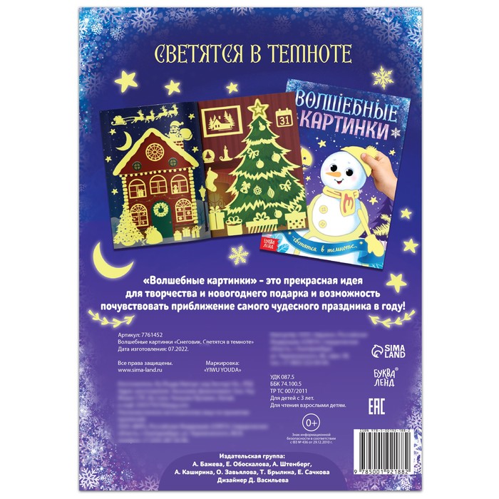 Книжка с наклейками «Снеговик. Волшебные картинки», светятся в темноте, 4 аппликации, 12 стр. — Характеристики
