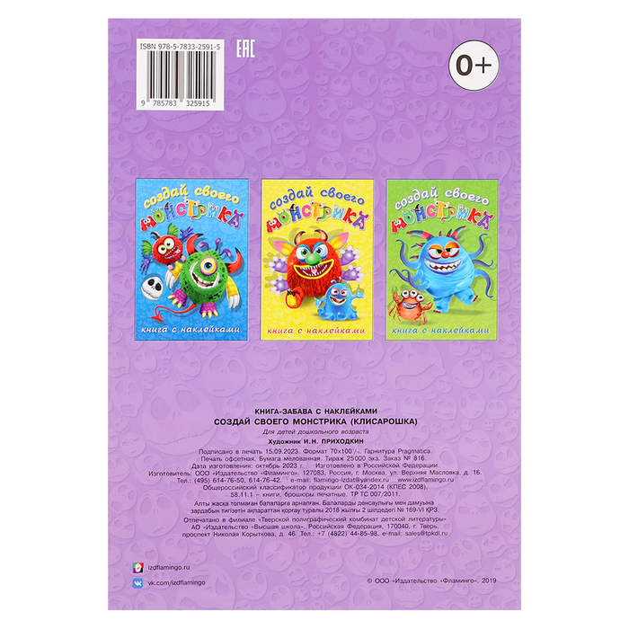 Книжка предлагает детям создавать своих собственных монстриков, используя наклейки и готовые шаблоны. Каждый персонаж может получить своё имя и историю, что стимулирует фантазию и пополняет словарный запас ребёнка. Занимательные задания тренируют внимание, логику и память, а компактный размер книги делает её идеальной для развлечения в дороге, на прогулке или в очереди. Благодаря универсальной тематике, она подходит как для мальчиков, так и для девочек.
