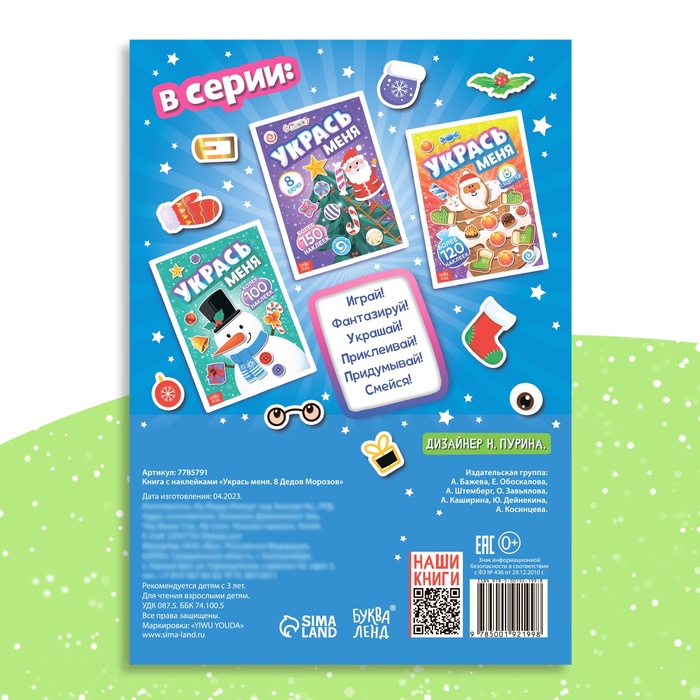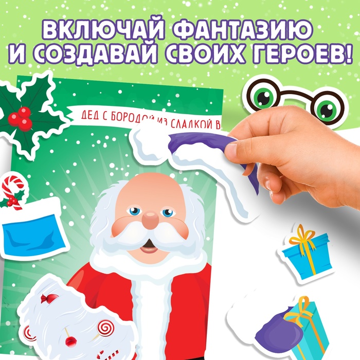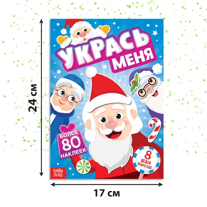 Книжка с наклейками «Укрась меня. 8 Дедов Морозов», 12 стр., более 80 стикеров — Характеристики
